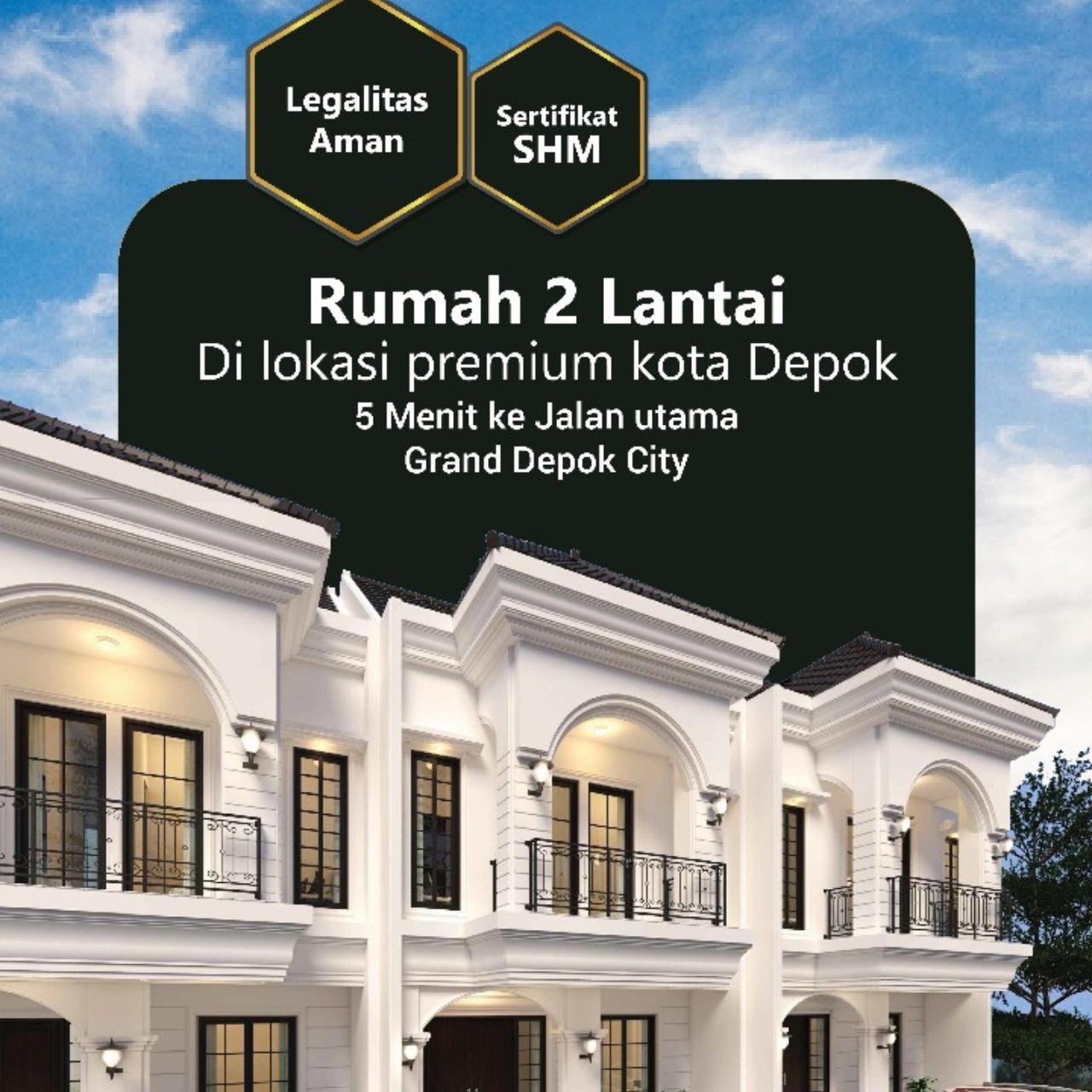 Hanya Rp 1.250.000.000Sudah termasuk:✅ Sertifikat SHM✅ IMB lengkap✅ Free Biaya BPHTB & Notaris✅ Free Desain Interior